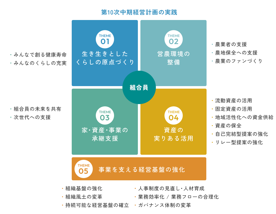 地域農業や地域社会の発展及び組合員一人ひとりのくらしや経済活動を持続可能なものとし、地域の未来をともに築いていくことを目指します。